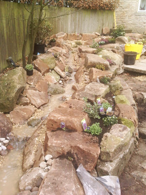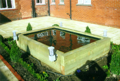 We use pond underlay butyl liner to construct all of our ponds and cascades. Depending on the finished look we're trying to achieve, we can also use locally quarried rockery stone, which gives the feature a natural feel. For a more formal finish we can use sleepers or clean cut paving stone. We also supply and fit all necessary pumps, lighting including underwater lighting and either UV or mechanical filters. We can also supply or advise on suitable plants for your pond.