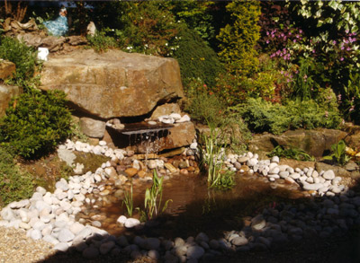 We have constructed all types of ponds and water features for customers in the past, from small bubbling water features and small wildlife ponds to extensive formal fishponds, large waterfalls and stone cascades. We can supply and fit a large range of water features from small bubbling fountains and statues to contemporary designs such as drilled slate, stainless steel or glass. Whatever the design of your garden we have a water feature that will enhance the finished effect.